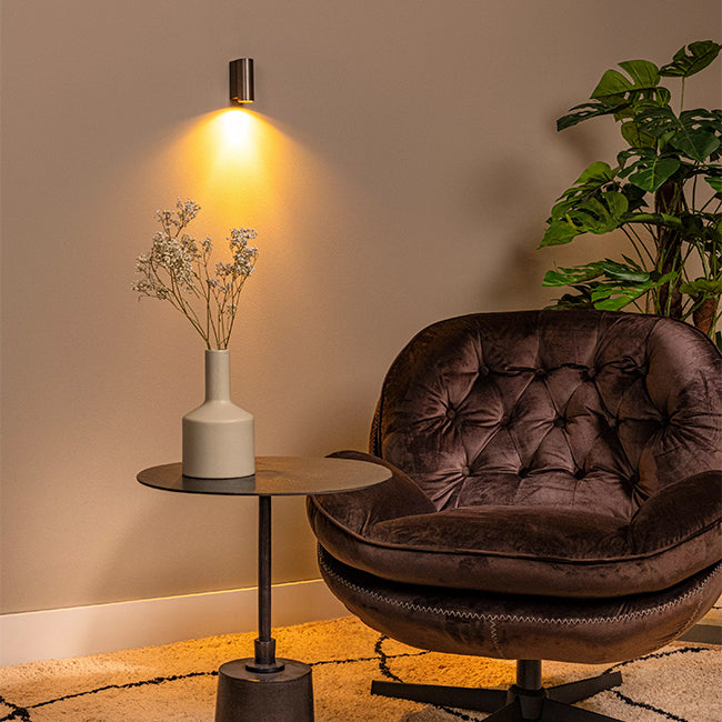 Con su estructura cilíndrica de aluminio de alta calidad y un acabado elegante, esta lámpara de pared se adapta perfectamente a cualquier interior moderno. La luz se proyecta directamente hacia abajo, creando un brillo acogedor. |