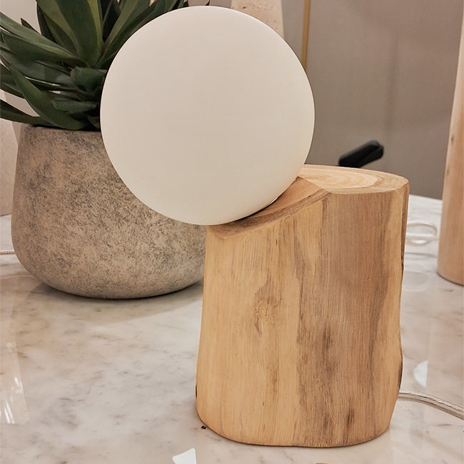 Lámpara de mesa madera natural pantalla vidrio opal  18x19 cm G9 - OPLS0037