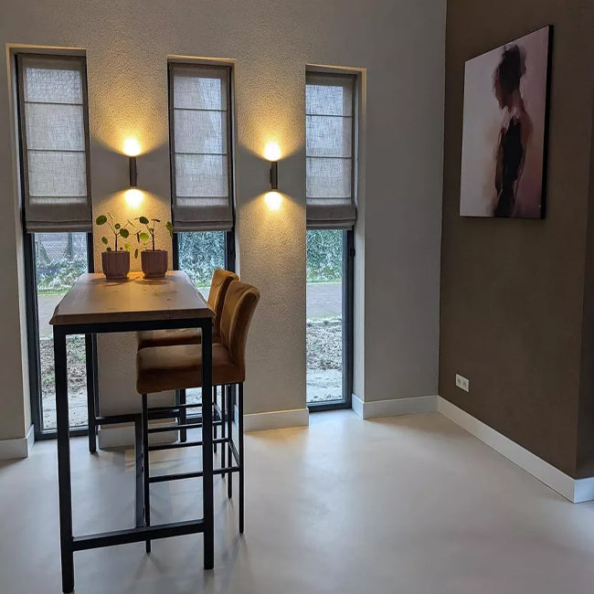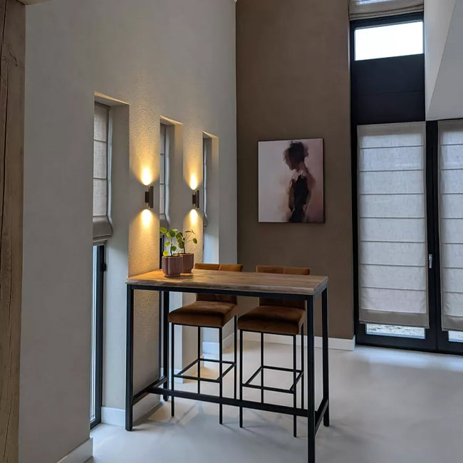 Este aplique lámpara de pared, fabricada con aluminio de alta calidad y un acabado sutil, irradia una elegancia minimalista. |