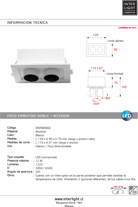 | Uso: | Interior / Foco direccionable |