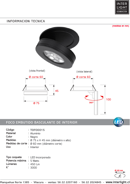 MEDIDA DE CORTE: Ø 60 mm (diámetro de corte)