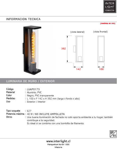 | Otros: | Una buena iluminación de fachada no solo aporta ambiente a tu hogar, también contribuye a la seguridad. |