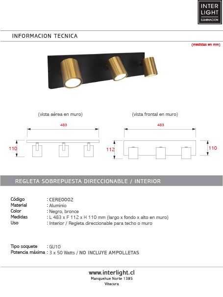 Potencia máxima: 3 x 50 Watts / NO INCLUYE AMPOLLETAS