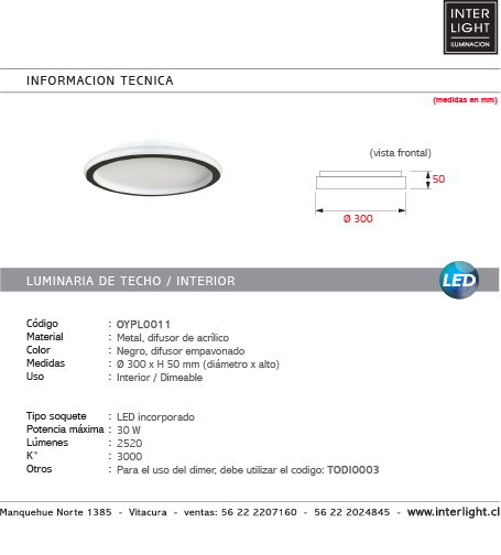 | MATERIAL: | Aluminio, difusor de acrílico |
