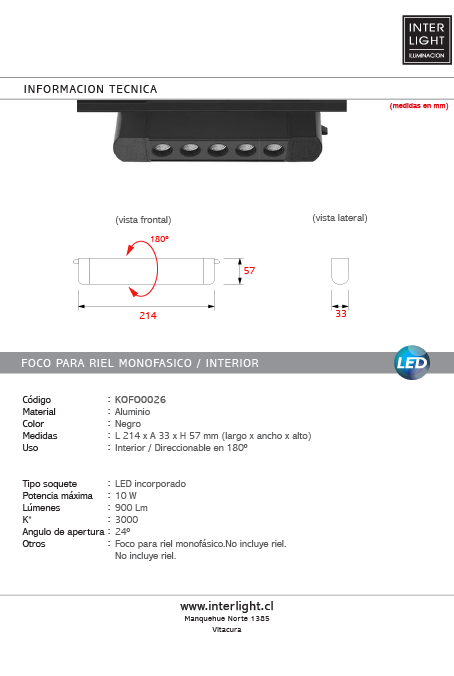 Uso: Interior / Direccionable en 180º