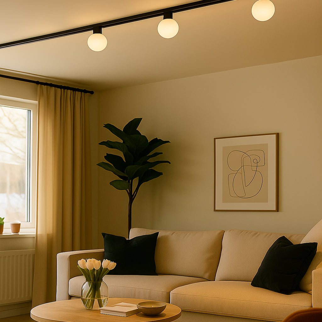 | Este sistema de riel con lámparas esféricas de cristal ofrece una forma inteligente de iluminar tu espacio. Tú decides cuántas luces necesitas y dónde colocarlas. Gracias a su diseño ajustable, puedes mover y orientar cada lámpara fácilmente en cualquier momento, adaptando la iluminación a tu estilo y necesidades. |