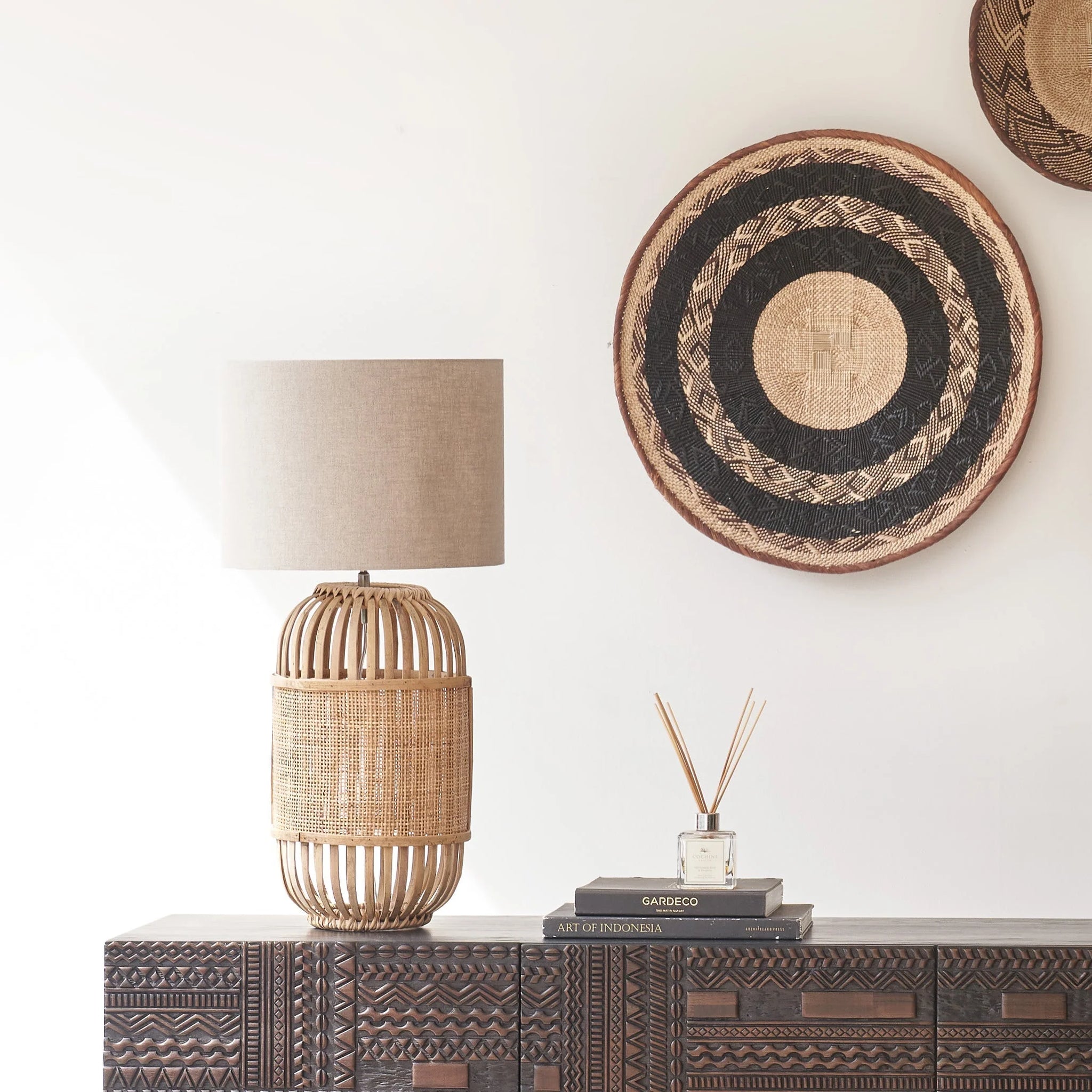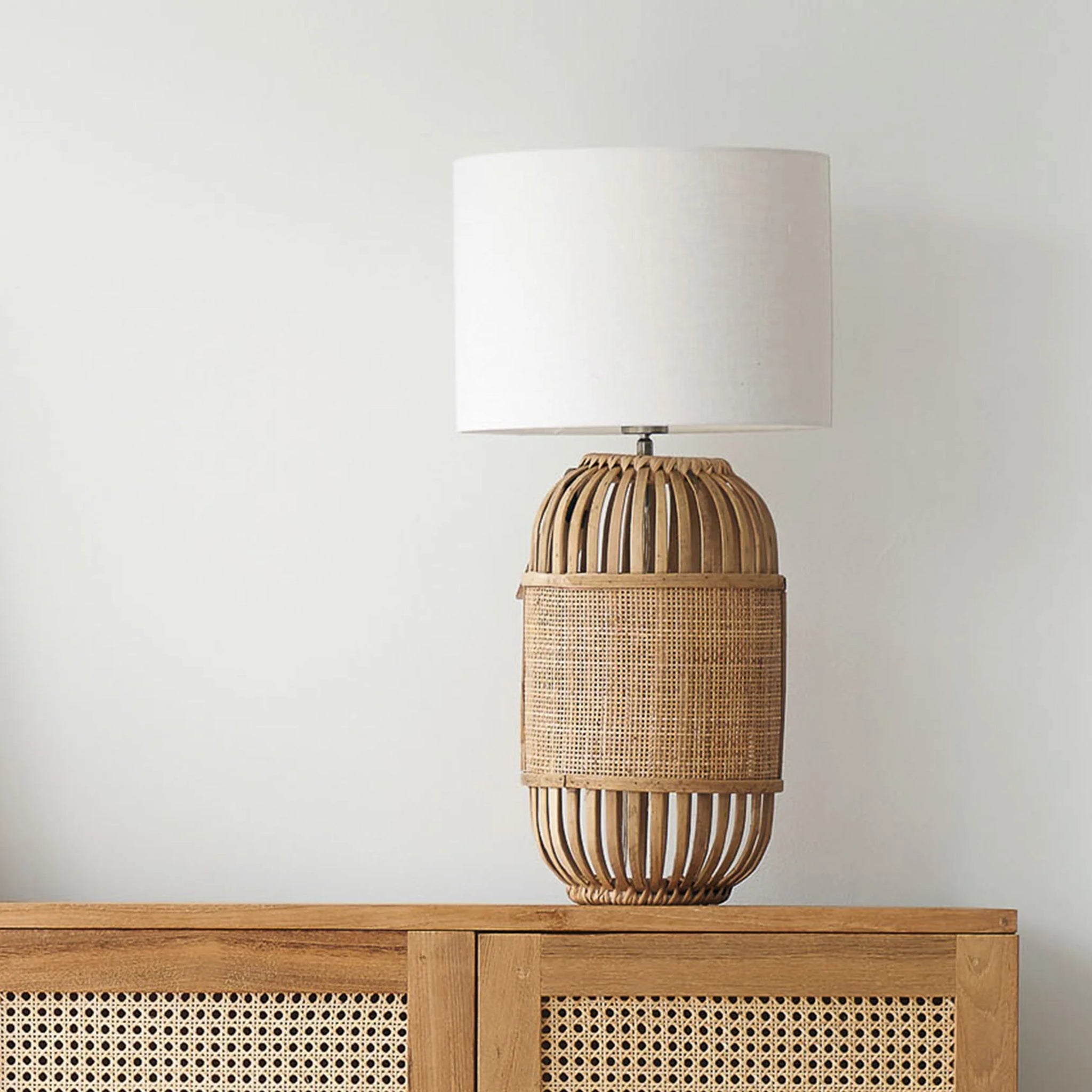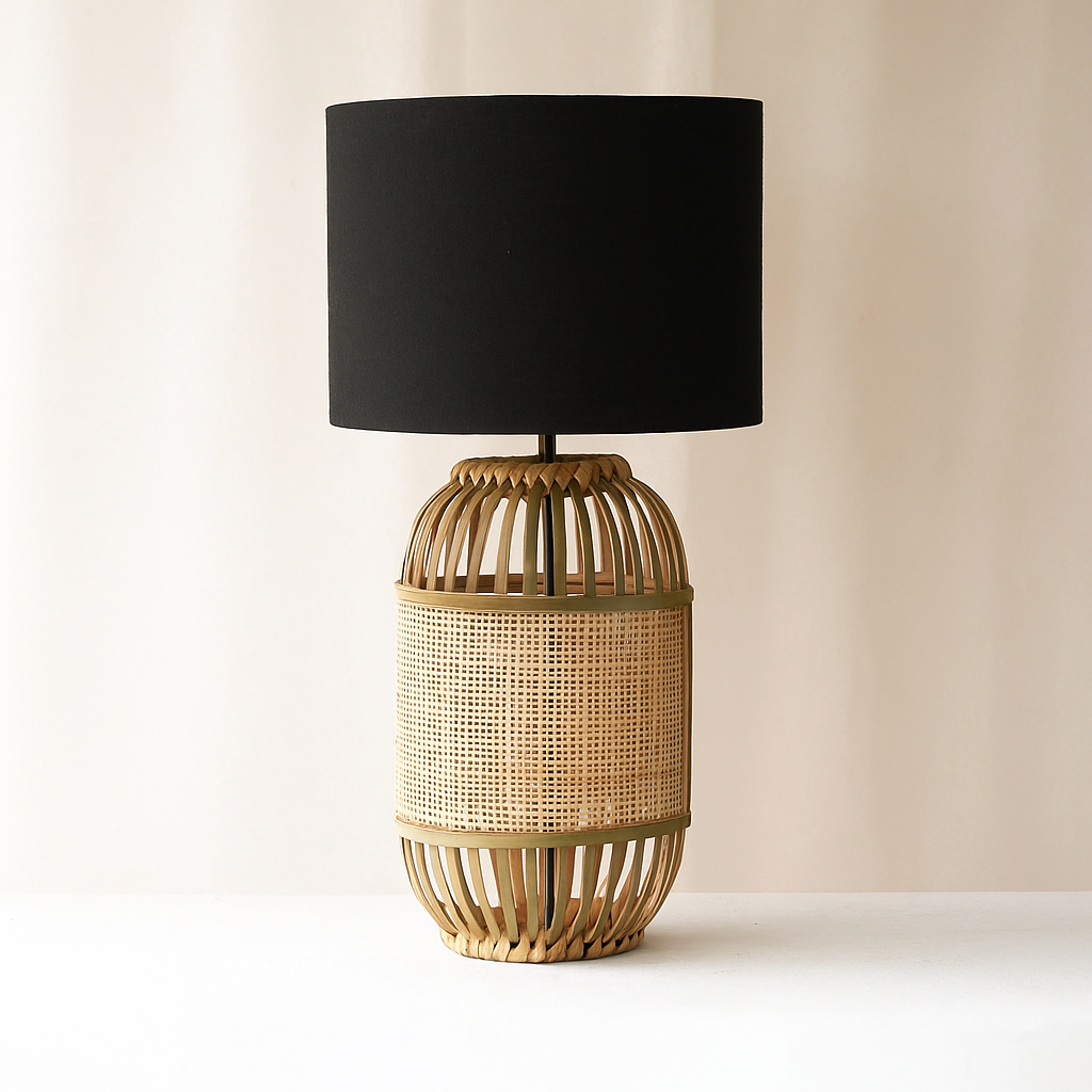 | MATERIAL: | Ratán, pantalla de tela |