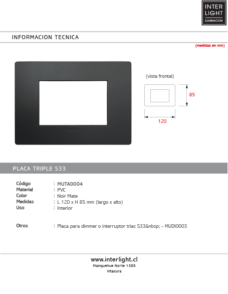 Otros: Placa para dimmer o interruptor triac S33  - MUDI0003